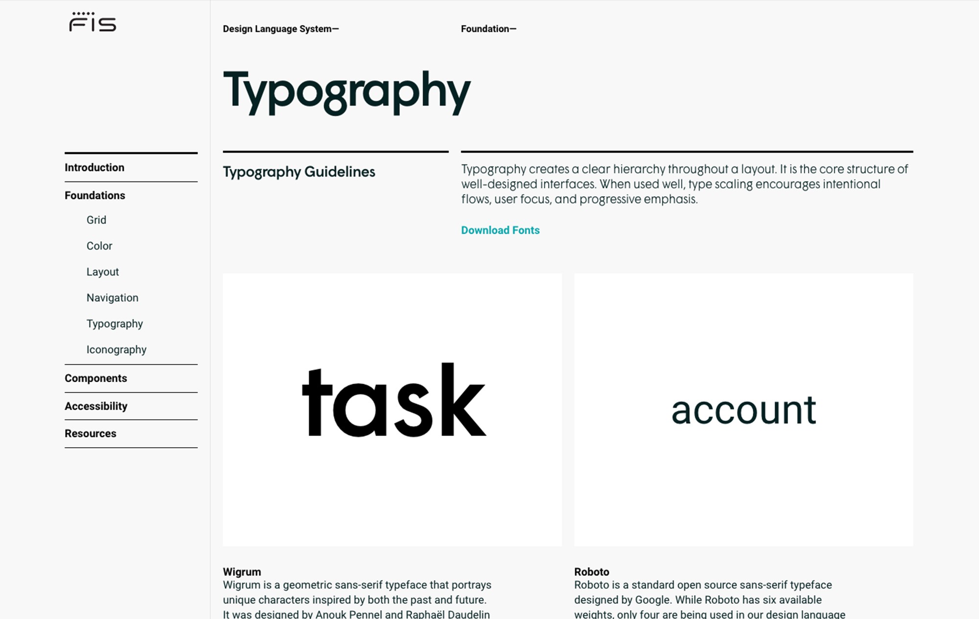 The designed workflows were also used as entry points to compile a preliminary design language system for FIS — amplifying design at scale by increasing velocity and optimizing efficiency across lines of business. This online platform was complemented by a initial product backlog and a feature roadmap to help streamline future design and development efforts.